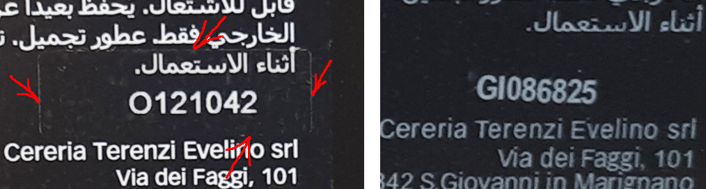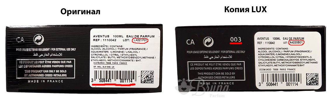 С 2022 года на парфюмерном рынке появился данный оригинальный парфюм где батчкод также как, в сравниваемой нами копии, нанесен прямо на коробочку, что естественно не делает оригинальный парфюм копией. Причин этого может быть много. Данный парфюм производится на разных заводах, один завод наносит батчкод при помощи наклейки, другой прямо на полиграфию. А может быть данный аромат стал на столько популярным, а соответственно и продаваемым, что выпускаемая разовая партия на столько велика, что полиграфия заказывается специально под изготовляемую партию. Все это тонкости технологического процесса производства. На фото внизу экземпляры 2022 года.