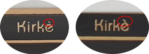 Разница в дизайне тоже отсутствует. Разве что надстрочный знак в слове "Kirke" в копии слился с буквой "е", что говорит о качестве полиграфии.