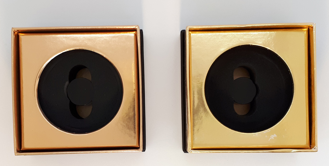 Внутренняя вкладка упаковки имеет одинаковый вид размер и раскрой. В оригинале, картон в сечении имее темный цвет, обычно бывает наоборот.